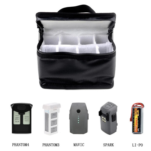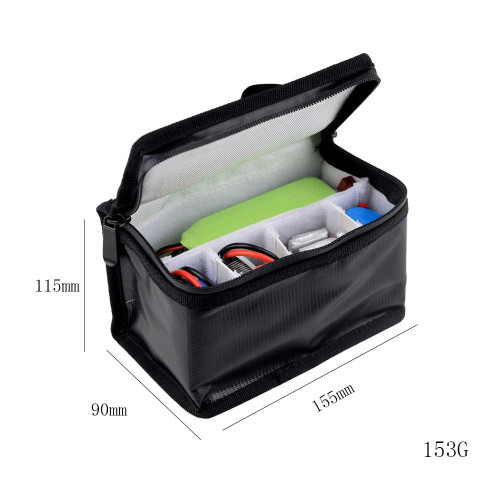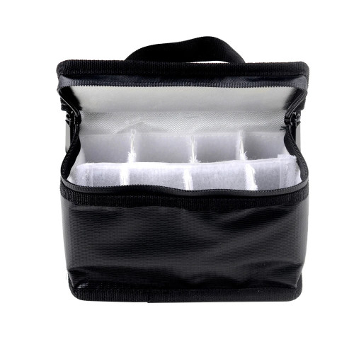 Компактна протипожежна сумка для LiPo акумуляторів. Органайзер на липучках дозволяє змінювати конфігурацію відсіків. Сумка застібається на блискавку та має ручку для зручності транспортування. Вогнетривкий матеріал для більшої безпеки під час зарязджання, транспортування та зберігання акумуляторів.