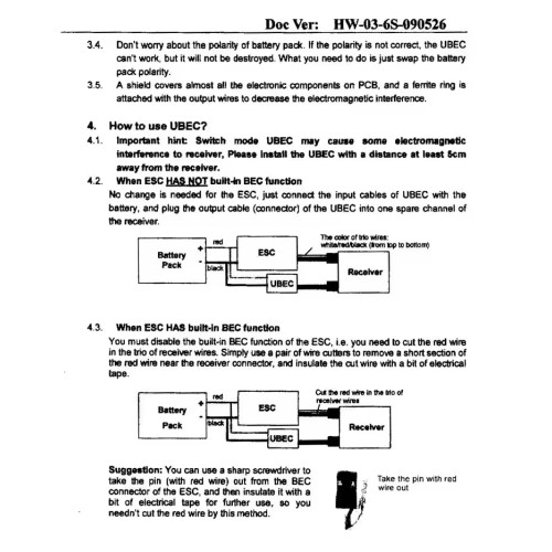 Встановіть UBEC подалі від сильних джерел шуму (моторні регулятори, силові проводи), але металевий екран значно знижує їв вплив.